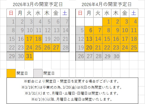 ※3/19(木)は卒業式の為、3/20(金)は祝日の為、閉室いたします。