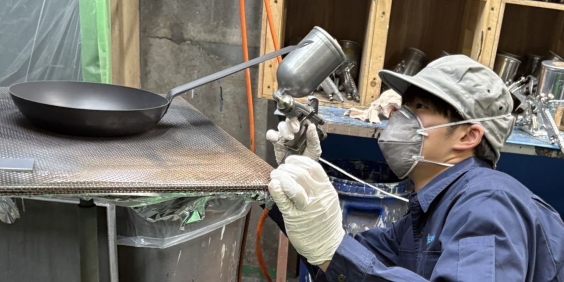 日建塗装工業では、二日目に会社概要や塗装工程の座学を受け、三日目と四日目には春日部工場で実際の塗装工程を見学しました。また見学だけでなく、マスキング作業や梱包作業、フライパン塗装体験を通して製造現場で働く方々の技術力や工夫を実感しました。八日目には社内でプレ発表会を行い、各部署の社員の方々から貴重な意見をいただきました。