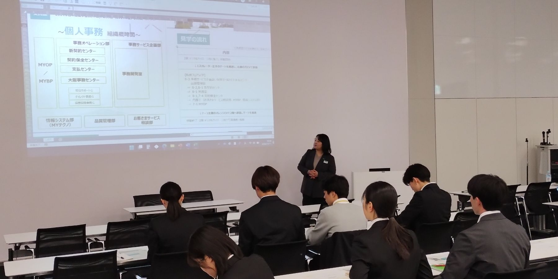 11月11日より、川村ゼミの2、3年生と明治安田様との産学連携授業がスタートしました。同日に明治安田様の東陽町オフィスへお邪魔させていただき、事業についてご説明頂きました。