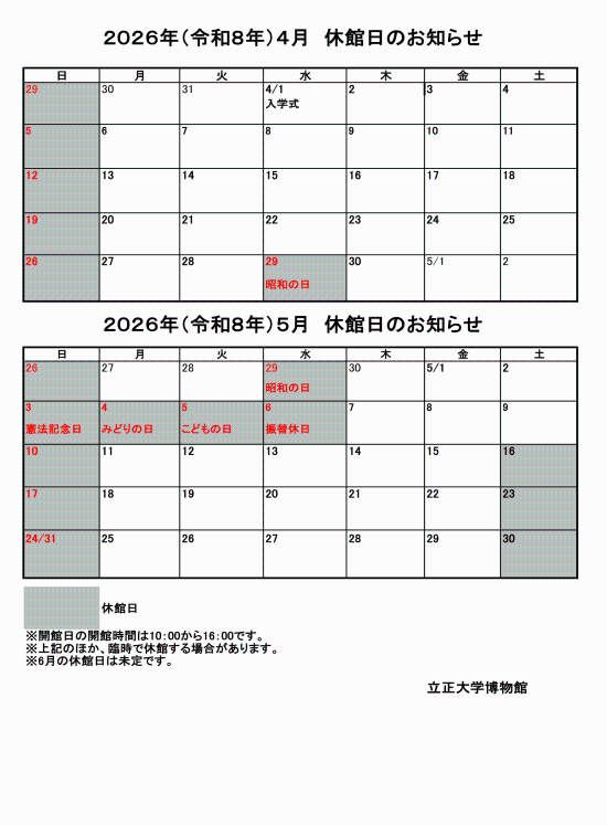開館日 : 月・水・木・金・土曜日(大学休業中を除く)