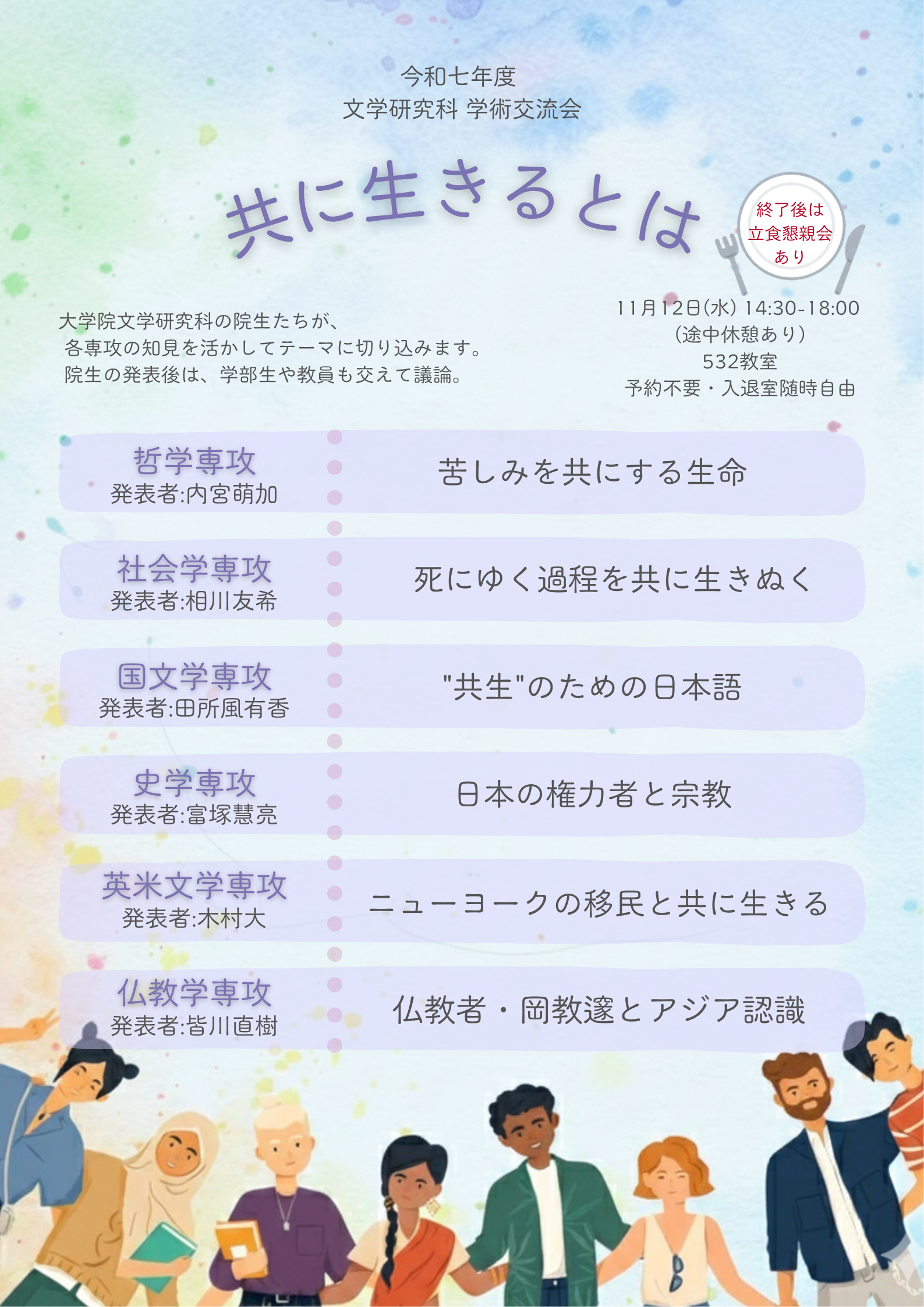 大学院文学研究科によるシンポジウム、学術交流会を今年も開催いたします。