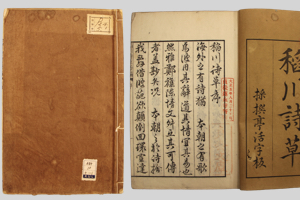 山梨稲川(1771-1826)の漢詩集。稲川は漢学者であったが、漢詩も巧みだった。稲川の号は、駿府城南郊外の稲川(現・静岡市駿河区稲川)に移り住んだことに由来する。刊記により、文政4年に刊行された採選亭の木活字版であることが分かる。なお、本書最後の漢詩は、採選亭が新刻の活字版を完成させたことを祝い、贈ったものとなっている。