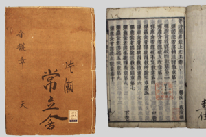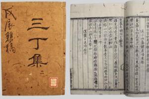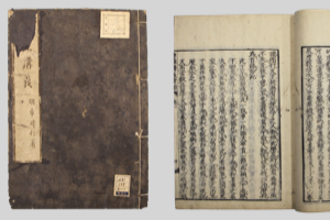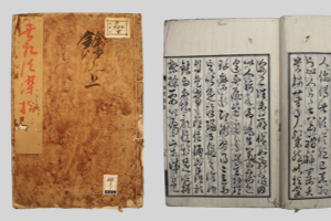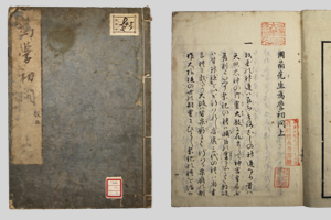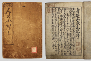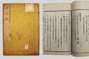 荻生徂徠門下の儒者、山県周南(1687-1752)の著作で、学問・政治・道徳などを平易に説いた書。初版は宝暦10年の刊行だが、本資料は河内屋太助による後印本。見返しの「文金堂」(河太の堂号)の記載は入れ木による修正。巻末に付された「文金堂制本目録」には、文化6年(1809)刊の『拳会角力図会』が見られるため、それ以降の刷りと分かる。