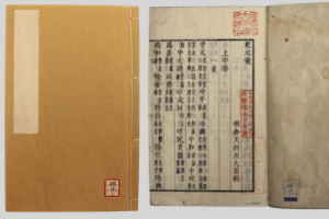 中国明の申時行(1535-1614)が万暦帝に『尚書(書経)』を講義した内容をまとめた『書経直解』を増補した書。明の万暦26年(1598)版をもとにし、訓点を付して日本で出版したものと考えられる。本資料は、延宝2年に京都の吉野屋権兵衛が刊行した本の後印本で、河内屋太助の奥付や、河太が出版していた「武経書」(武官のための経典の意、兵法書など)の目録を付す。
