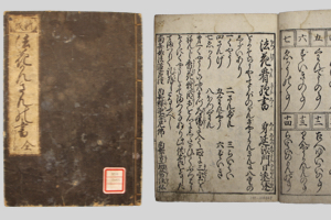 千字文は、一千の漢字からなる韻文で、中国梁の武帝(在位502-49)が周興嗣に命じて作らせたとされる。日本でも、漢字の学習や書道の手本として利用された。この書は、千字文の注釈書。割行で注釈を、上段に「国読」と称した書き下し文を配す。本資料は、表紙や刊記を欠くが、版心下部に蔦屋重三郎の堂号である「耕書堂」の記載がある。著者の石川雅望(1753-1830)は、初代蔦重の墓碑銘を書いた人物でもある。