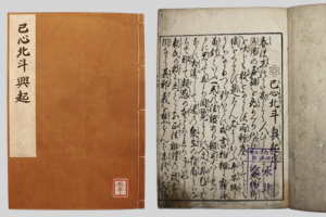 尾張法蓮寺の13世を務めた久成院日相(1635-1718)の著作。日相の自序によれば、京都で『霧海南針』という法語の書を読み、同書に対する批判をまとめたものという。『霧海南針』は、黄檗宗の潮音道海(1628-95)の著作で、寛文7年版(1667)がある。本資料は延宝4年の松会版。版元名は「松会開板」としかないが、2代目市郎兵衛による刊行か。なお、『己心北斗興起』には寛文13年(1673)の別版もある。