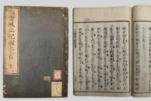 奈良時代の地誌『出雲国風土記』を漢字仮名交じりにした書。同書は和銅6年(713)の詔によって作られた『風土記』の一つで、天平5年(733)の奥書をもつ。著者の富永芳久(1813-80)は出雲大社の神職で、国学を学び同書を研究した。本資料の奥付には河内屋茂兵衛の刊記とともに、芳久が著した『風土記』関連の書目が載る。本資料には藤原隆生の序文があるが、初版本にこの序はないとされる。