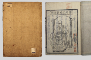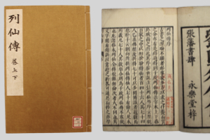 中国の仙人70人の伝記。中国前漢末の劉向の著作とされる。本文を校正した岡田新川は、尾張藩の藩校明倫堂で教授を務めた人物。初版本は、尾張の書肆永楽屋(片野)東四郎によって寛政5年(1793)に刊行された。本資料には寛政6年の刊記があり、永楽屋東四郎のほかに蔦屋重三郎の名が見られる。蔦重は、永楽屋と寛政3年(1791)から提携しており、『列仙伝』の江戸での販売を担っていたと考えらえる。