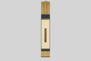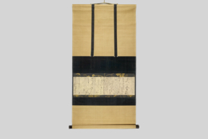 元政が自作の和歌を記した短冊を軸装にしたもの。「野雪 見るまゝにやゝ跡おほし九重の内野にふれる今朝のしらゆき 妙子」とある。「妙子」は元政の別号。元政の和歌集『草山和歌集』に見えない歌だが、萩原是正『深草元政上人墨蹟』(大神山隆盛寺、2016年10月)に、この歌を揮毫した懐紙が載る。