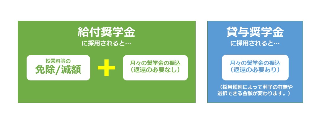 なお、①と②を個別に申込む必要はなく、①JASSO給付奨学金の申込手続きの中に②大学の授業料等減免の申込手続きが含まれています。