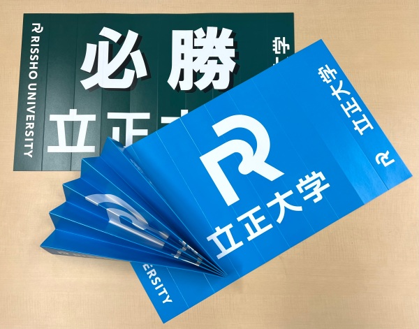 立正大学の“応援がひとつになる”——その想いを込めて、統一デザインの応援グッズを作りました。