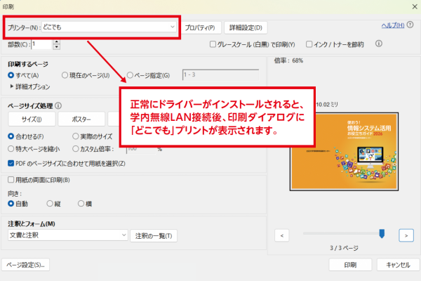 ⑪作成されたプリンタアイコン「どこでも」を使用して印刷します。
